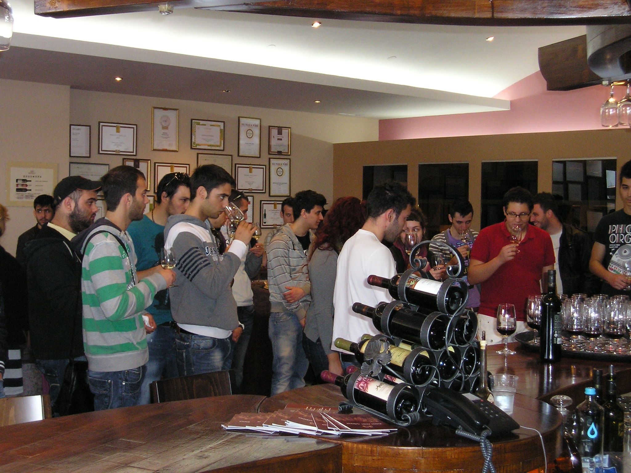 Η επίσκεψη έγινε στο πλαίσιο του μαθήματος “Οινολογία” και συνοδεύονταν από την καθηγήτρια του μαθήματος και οινολόγο κα.Καρβελά Ε.