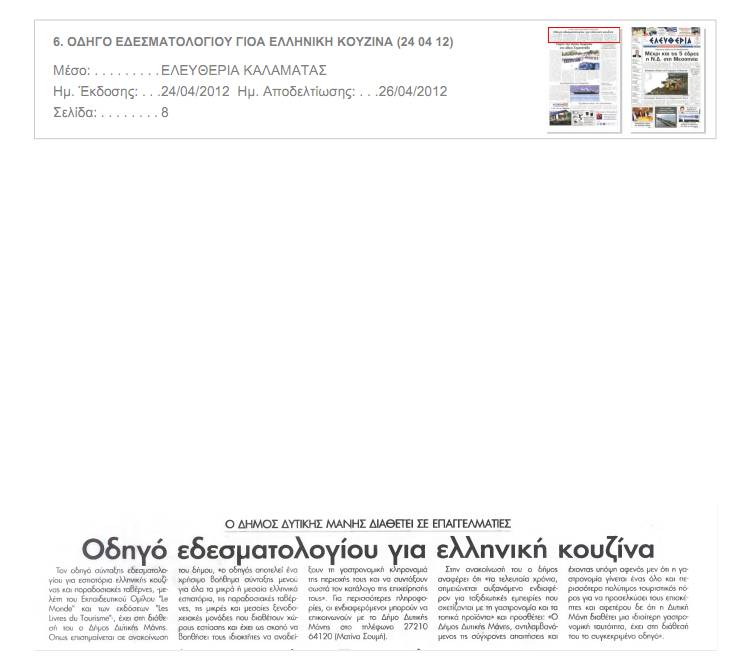 Τον οδηγό σύνταξης εδεσματολογίου για εστιατόρια ελληνικής κουζίνας και παραδοσιακές ταβέρνες – μελέτη του Εκπαιδευτικού Ομίλου “LE MONDE” και των εκδόσεων “Les Livres du Tourisme” – έχει στη διάθεση του ο Δήμος Δυτικής Μάνης.
