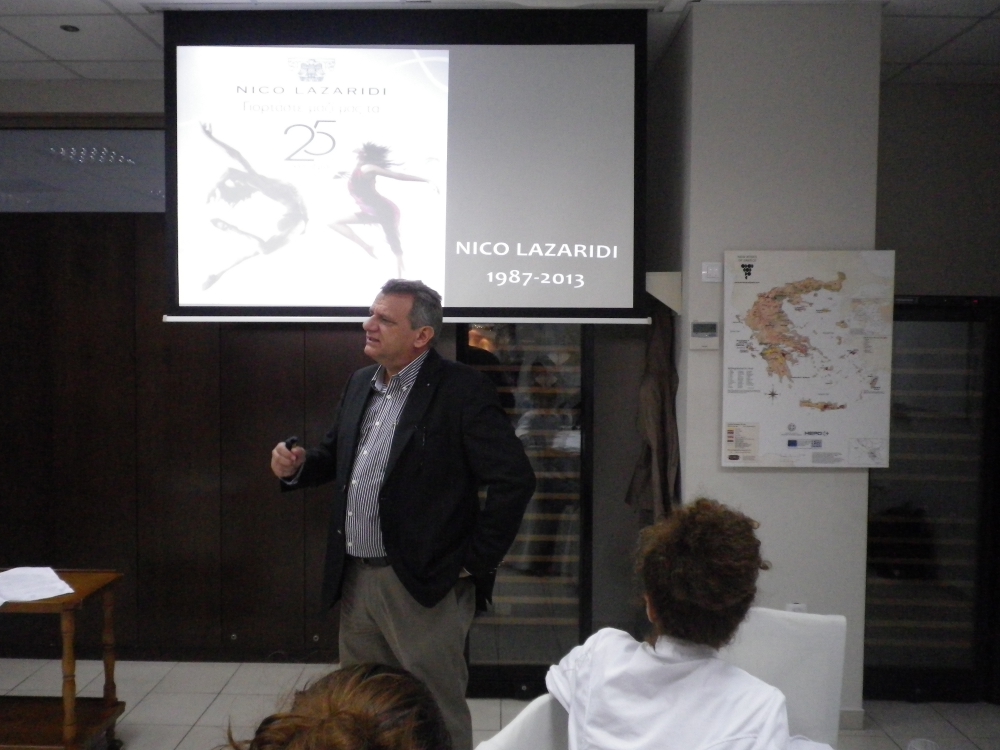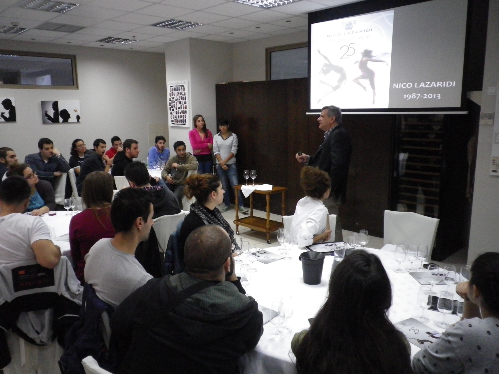 Nico Lazaridi (2)Δυναμικά ξεκίνησε τη φετινή σεζόν το  Πρόγραμμα Παρουσίασης Οινοποιείων της σχολής LE MONDE με μια εξαιρετική παρουσίαση του Château Nico Lazaridis, που πραγματοποιήθηκε στον χώρο του εστιατορίου – bar την Πέμπτη 7 Νοεμβρίου. Με χαρά φιλοξενήσαμε τον κ. Γιάννη Κουλελή, Δ/ντη Πωλήσεων της εταιρείας Vinalia, η οποία διανέμει πανελλαδικά τα κρασιά του κτήματος Nico Lazaridi.