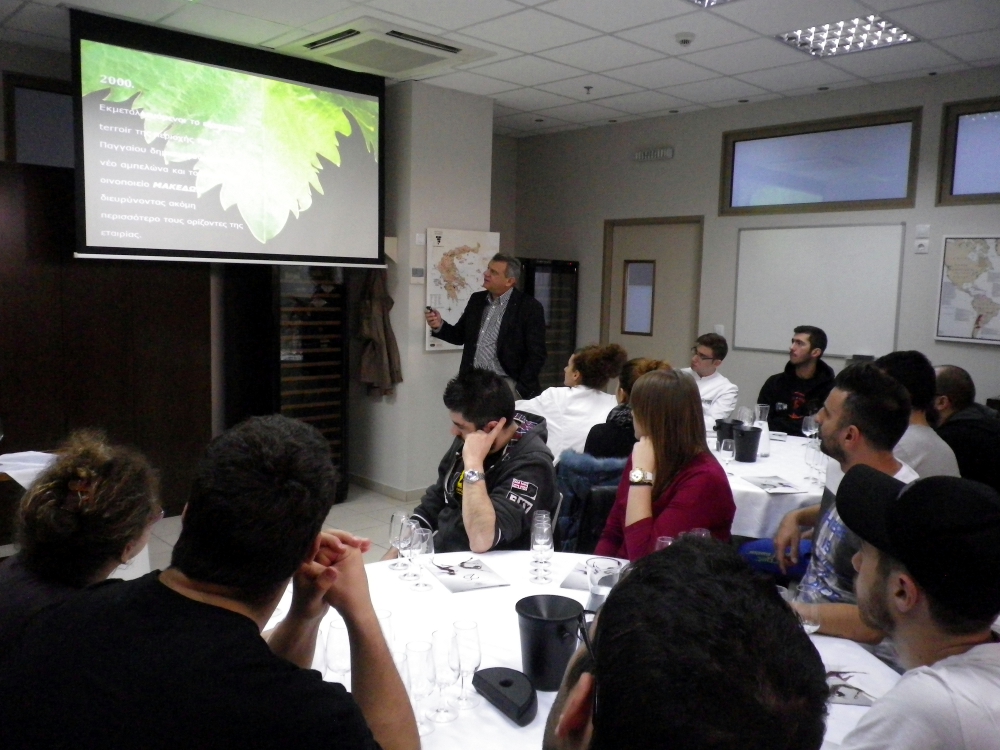 Όσοι παρακολούθησαν την παρουσίαση είχαν την ευκαιρία να δοκιμάσουν μερικά από τα έξοχα κρασιά του κτήματος όπως τα Château Nico Lazaridis Λευκό, Château Nico Lazaridis Ροζέ και Μαγικό Βουνό λευκό και να τα σχολιάσουν μαζί με τον κ. Κουλελή και την καθηγήτρια οινολογίας της σχολής μας, κ. Μαρία Τζίτζη.