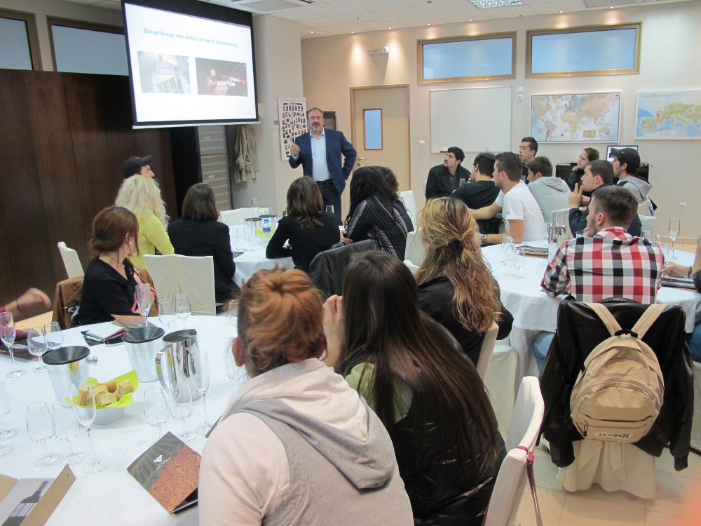 Ταυτόχρονα οι σπουδαστές που παρακολούθησαν την παρουσίαση είχαν την ευκαιρία να δοκιμάσουν τα εξαιρετικά κρασιά του οινοποιείου Πιερία – Ερατεινή, όπως το Ερατεινές Ευχές Κόκκινες, Ερατεινές Ευχές Λευκές και το Γυμνός Βασιλιάς και να σχολιάσουν τα οργανοληπτικά τους χαρακτηριστικά. Στη συνέχεια ακολούθησε μια συζήτηση με τον κ. Αργυρόπουλο όπου οι σπουδαστές έθεσαν τα ερωτήματά τους για την αμπελουργία και την οινοποίηση των κρασιών.