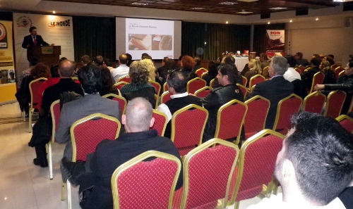 Οι εκπρόσωποι της εταιρίας ΙΟΝ, ο κ. Μιχάλης Φιλιππίδης, υπεύθυνος προϊόντων και ο κ. Βασίλης Μπουκίδης, υπεύθυνος χημείου και εργαστηρίου ερευνών, παρουσίασαν συνοπτικά τη δράση της γνωστής ελληνικής εταιρίας σοκολατοποιίας, εστιάζοντας στην πλούσια γκάμα επαγγελματικών προϊόντων που διαθέτει.