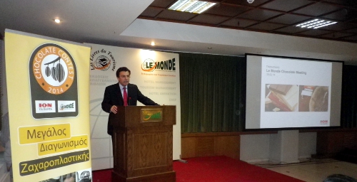 Στη συνέχεια πραγματοποιήθηκε η απονομή του μεγάλου διαγωνισμού ΙΟΝ – LE MONDE Chocolate Contest που διοργανώθηκε από την ΙΟΝ και τη LE MONDE. Οι καλεσμένοι παρακολούθησαν ένα σύντομο video από τη διεξαγωγή του διαγωνισμού και ακολούθησε η απονομή των βραβείων στους δύο πρώτους νικητές. Ο πρώτος νικητής, κ. Αθανάσιος Αποστολακόπουλος, κέρδισε μια υποτροφία για το τμήμα Europastry chef, συνολικής αξίας 3000 € και η δεύτερη νικήτρια, κ. Ελίνα Μηλιώνη, μία δωροεπιταγή αξίας 250€ από το κατάστημα chef story. Ακολούθησαν αναμνηστικές φωτογραφίες με όλους τους φιναλίστ.